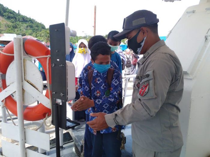 Dalam kunjungan tersebut, protokol kesehatan tetap dilaksanakan guna mencegah penyebaran Covid-19 yaitu dengan mengajak para siswa dan gurunya untuk mencuci tangan dan melakukan tes suhu badan sebelum memasuki kapal.