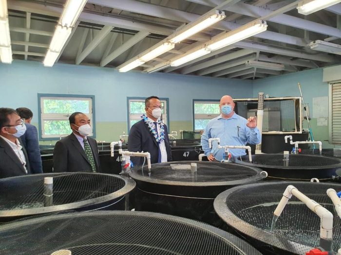 Kerja sama KKP dengan Oceanic Institute of Hawaii Pacific University mencakup transfer teknologi dan transfer pengetahuan yang terkait dengan produksi induk udang unggul melalui pembangunan Broodstock Center Udang. OI sendiri merupakan produsen induk udang nirlaba yang telah mengembangkan induk udang unggul baik unggul dalam pertumbuhan maupun Bebas Penyakit Udang.