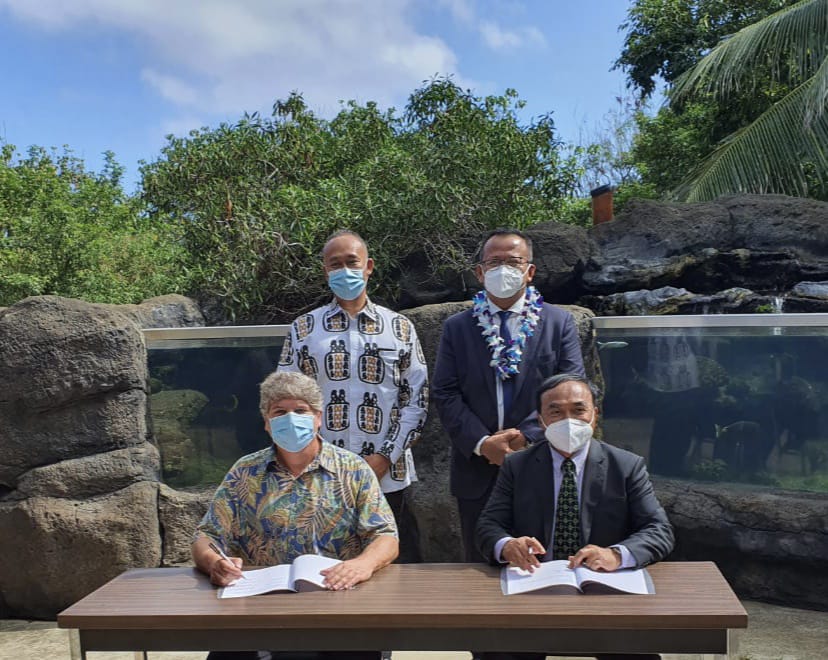 Penandatangan Letter of Intent (LOI) dilakukan oleh Direktur Jenderal Perikanan Budidaya Slamet Soebjakto bersama Direktur Eksekutif, Wakil Presiden Senior, dan Rektor Hawai’i Pacific University di Kantor Oceanic Institute, Waimanalo, Hawai’i pada Jumat 20 November siang waktu setempat. Menteri Kelautan dan Perikanan Edhy Prabowo menyaksikan langsung penandatanganan kerja sama tersebut didampingi Konsul Jenderal RI Los Angeles, Saud Purwanto Krisnawan.