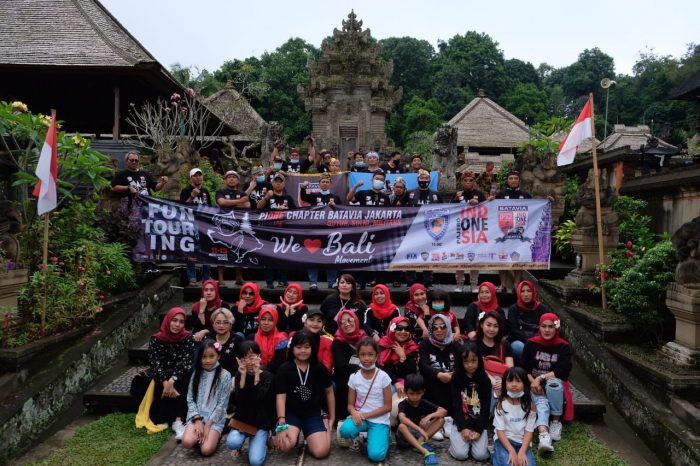 “Keterlibatan beberapa chapter kami sekaligus juga menjaga kebersamaan, kekompakan, dan menjalin silaturahmi antar chapter. Disamping itu juga, disela-sela kegiatan wisata ini kami juga melakukan kegiatan sosial dengan melakukan pembagian paket sembako dan masker ke masyarakat disekitar lokasi wisata yang kami kunjungi”  ujar RWahyu Haryadi, Ketua Umum PI.ONE yang ikut merangkai sebagai peserta Touring We Love Bali. Untuk diketahui, lokasi pembagian sembako dilakukan di Desa Wisata Penglipuran, Bangli dan Goa Lawa, Klungkung.