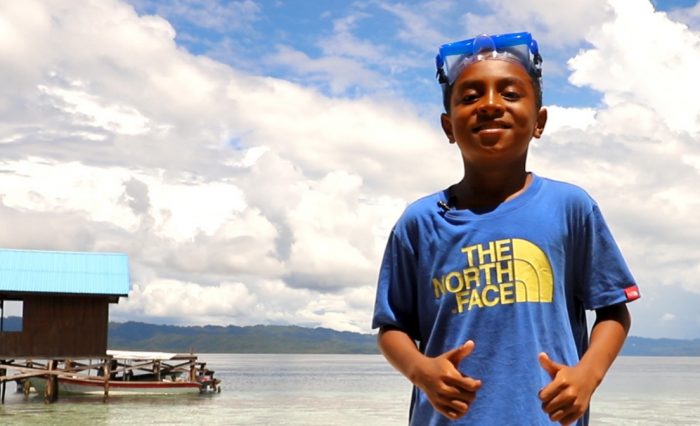 Jitro, salah satu anak di Desa Arborek mengaku senang dengan masker selam yang diterimanya. Senyum tak lepas dari wajah bocah 10 tahun tersebut, saat membuka kemasan masker selam di tangannya.