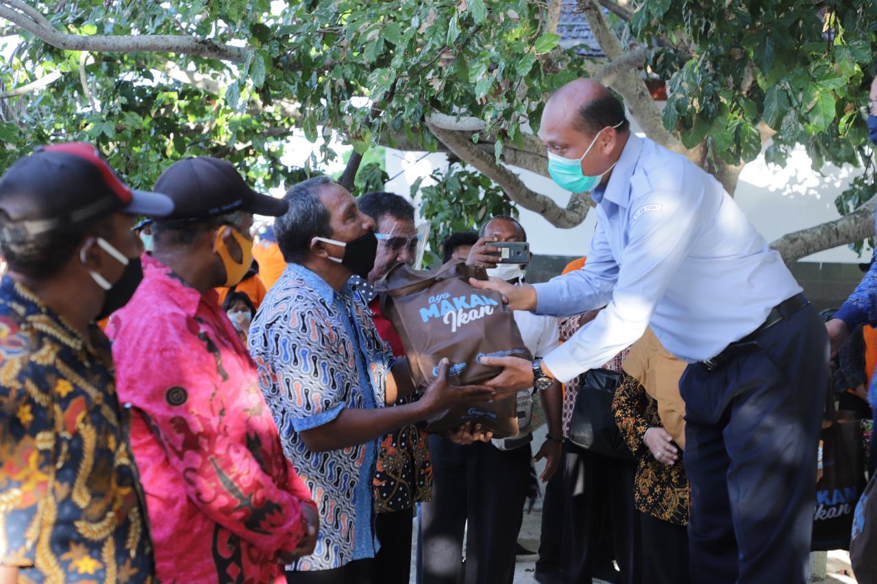 Penyerahan bantuan dilakukan oleh Plt. Dirjen Pengelolaan Ruang Laut, Tb. Haeru Rahayu bersama Plt. Dirjen Perikanan Tangkap Muhammad Zaini Hanafi, yang datang ke Arborek mewakili Menteri Kelautan dan Perikanan Edhy Prabowo.