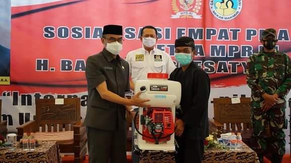 “Dengan sedikit sentuhan teknologi dan peningkatan kompetensi serta kapasitas sumberdaya manusia, pemerintah sedang menggalakan program pengembangan potensi desa menjadi Dewa (desa wisata agro), Dewi (desa wisata industri), dan Dedi (desa digital),” ujar Bamsoet dalam Sosialisasi Empat Pilar MPR RI Bersama Gabungan Kelompok Tani (Gapoktan) Mekar Makmur, Desa Mekarsari, Cianjur, Jawa Barat, Selasa (1/12/20).