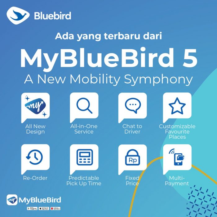“Aplikasi terbaru dari MyBlueBird 5 telah dirancang untuk memperluas kegunaan bagi pengguna setia dengan memperkenalkan beragam fitur antara lain Chat To Driver, Fixed Price, Multi-Payment, All-In-One Service, Reorder, Predictable Pick Up Time, hingga Customizable Favorite Places yang ditampilkan dengan All New Design sehingga memberikan kenyamanan dan keuntungan lebih saat menggunakan aplikasi MyBlueBird 5” Ujarnya.