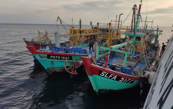 Tidak hanya satu kapal, KN. Bintang Laut – 401 berhasil menangkap tiga KIA asal Malaysia, dengan barang bukti sebanyak kurang lebih 3 ton ikan campuran.