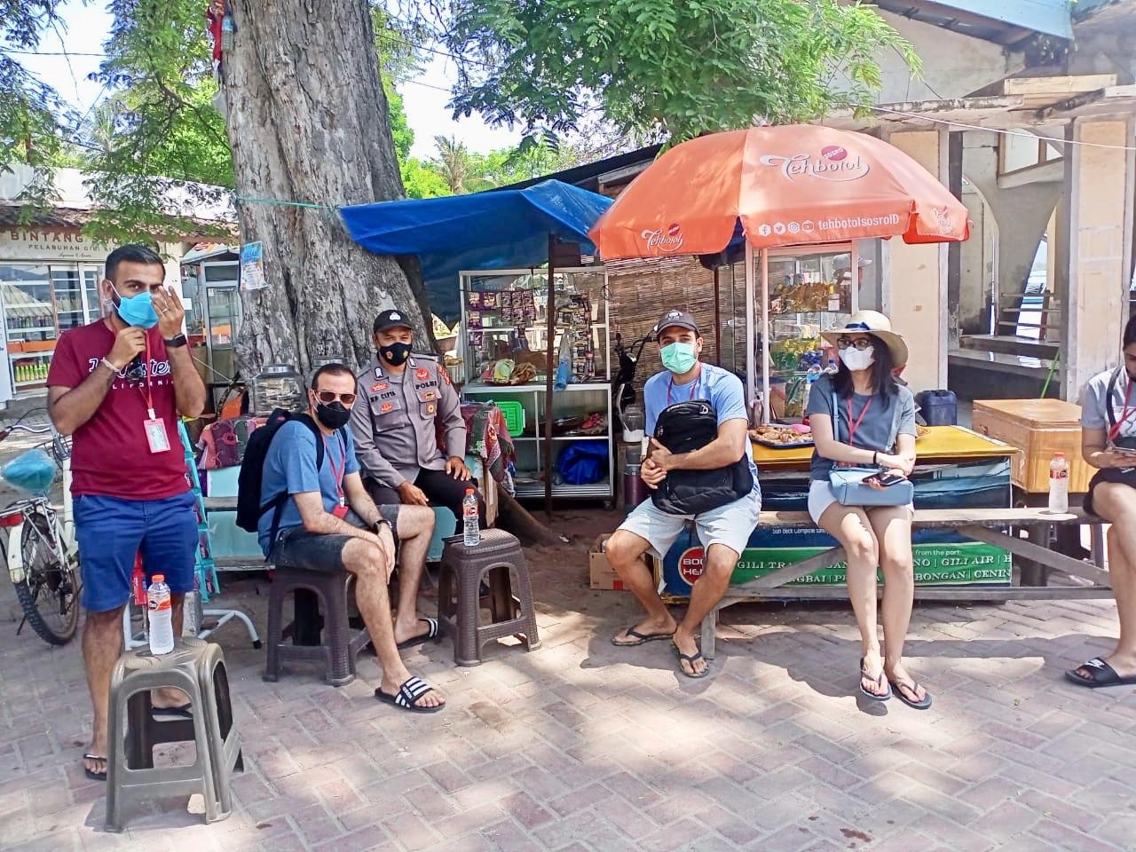 Sebagai Objek Wisata Internasional, Polisi secara konsisten menyampaikan himbauan terkait dengan Protokol Kesehatan ( Prokes ) Covid-19 kepada parang Wisatawan yang berkunjung dan Masyarakat sekitar sebagai salah satu bentuk antisipasi lonjakan penularan Covid-19 diwilayah Desa Gili Indah Kecamatan Pemenang Kabupaten Lombok Utara.