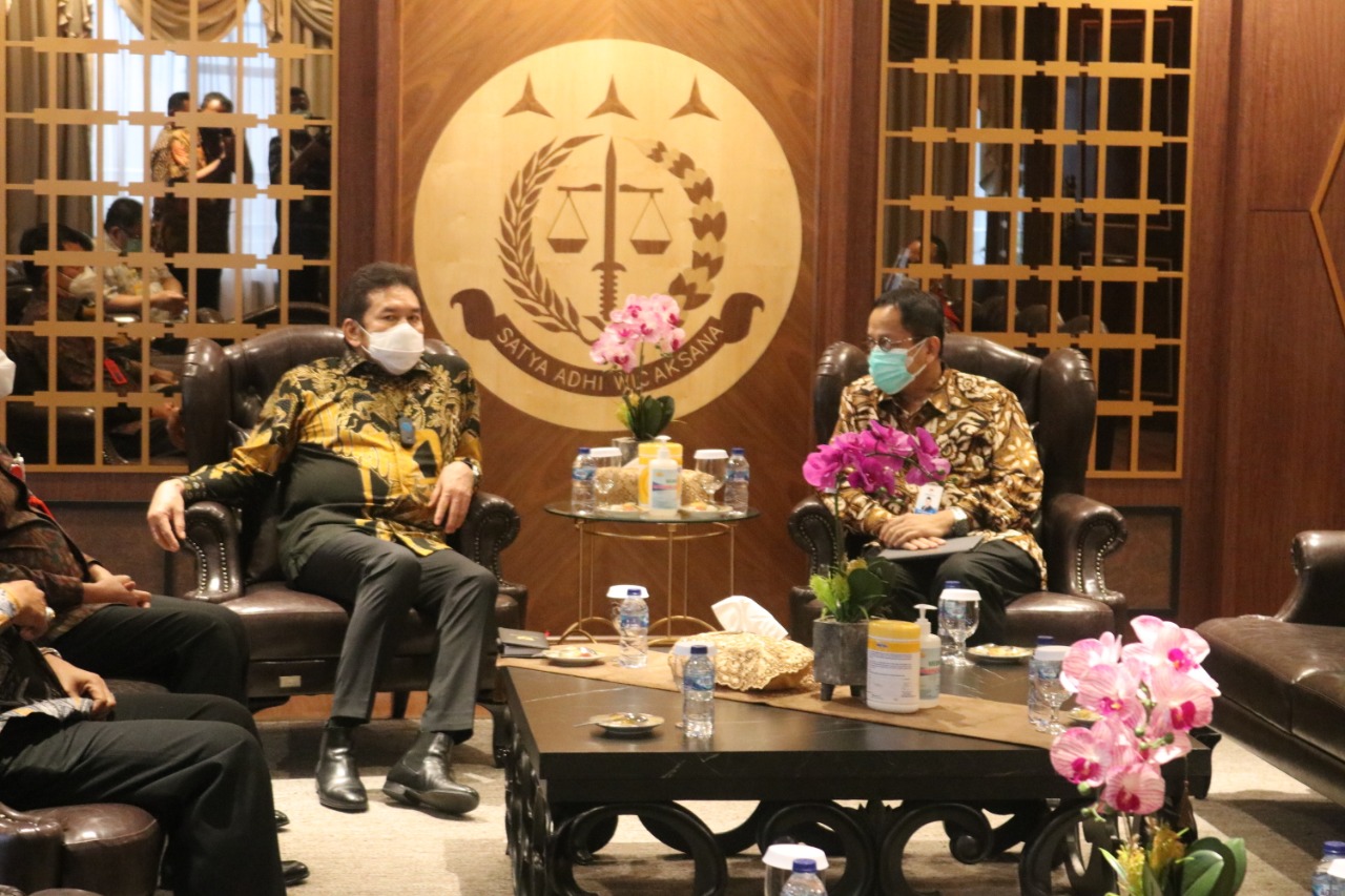 INAnews.co.id, Jakarta- Jaksa Agung Dr. Burhanuddin, SH. MH. didampingi Jaksa Agung Muda Intelijen Dr. Sunarta, SH. MH., Jaksa Agung Muda Tindak Pidana Umum Dr. Fadil Zumhana, SH. MH. dan Jaksa Agung Muda Tindak Pidana Khusus Ali Mukartono, SH. MH. menerima kunjungan Kepala Pusat Pelaporan dan Analisis Transaksi Keuangan (PPATK) Dian Ediana Rae beserta rombongan di Gedung Menara Kartika Adhyaksa Kejaksaan Agung Kebayoran Baru Jakarta Selatan.Pada Jumat, 29/01/21.