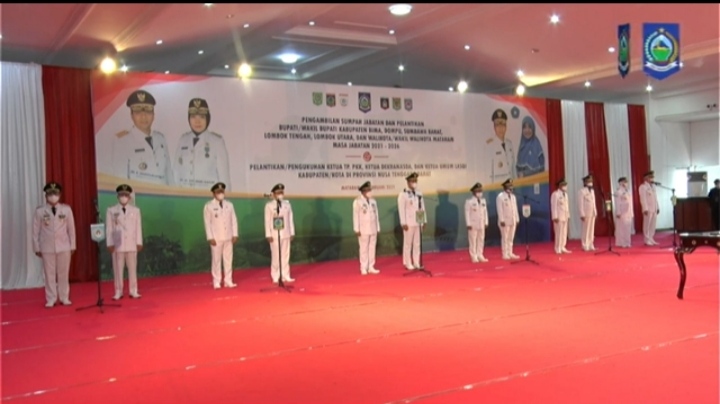 Adapun kepala daerah yang dilantik berjumlah Tujuh (7) yakni Walikota dan Wakil Walikota Mataram, Bupati dan Wakil Bupati Lombok Tengah, Bupati dan Wakil Bupati Lombok Utara, Bupati dan Wakil Bupati KSB, Bupati dan Wakil Bupati Dompu, Bupati dan Wakil Bupati Bima.