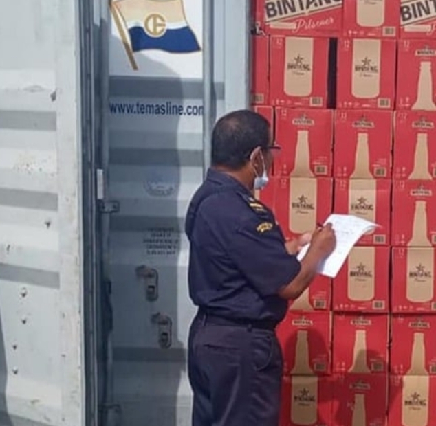 INAnews.co.id, – Petugas Bea Cukai Tual melakukan pengawasan pembongkaran dan pencacahan minuman mengandung etil alkohol (MMEA) oleh CV Tanimbar Indah yang berasal dari PT Multi Bintang di wilayah Saumlaki, Kabupaten Kepulauan Tanimbar.