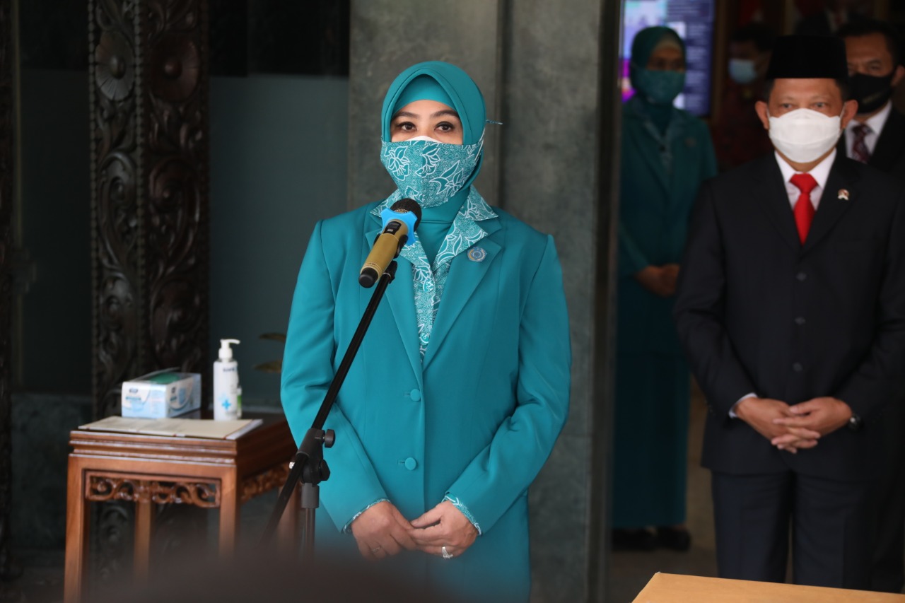 Dalam sambutannya, Tri menekankan, TP PKK telah menjadi mitra Pemerintah dalam gerakan untuk memutus rantai penyebaran Covid-19. Melalui gerakan dan jaringannya, TP PKK telah bersinergi ke penjuru negeri untuk menyosialisasikan penerapan prokes dan pembagian makser.