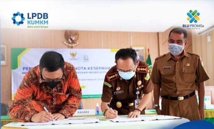INAnews.co.id, Sukabumi – Direktur pengembangan usaha LPDB – KUMKM Jarot Wahyu Wibowo bersama dengan Kepala Kejaksaan Negeri Sukabumi Mustaming melakukan sinergitas dalam bentuk penandatangan dalam bentuk nota kesepahaman bersama atau MOu antara LPDB-KUMKM dengan Kejaksaan Negeri kota  Sukabumi, pada Senen 8/02/2021.