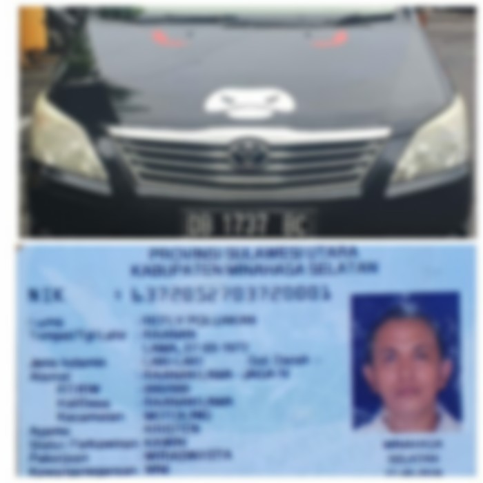 Data pelaku dan kendaraan minibus yang diamankan pihak Polres Kota Bitung, data didapat Redaksi dari pihak Kepolisian (foto :istimewa)