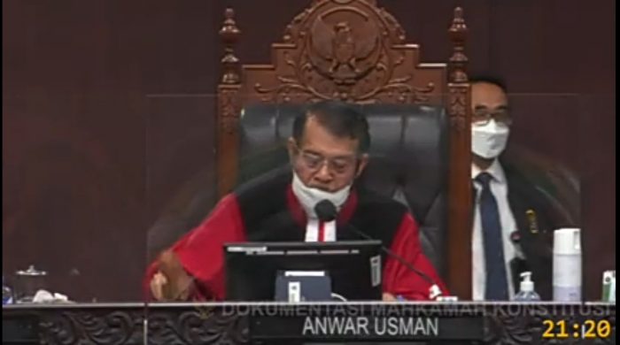 “Menyatakan diskualifikasi pasangan calon nomor urut 4 atas nama Yusak Yaluwo dan Yakob Waremba,” ujar hakim ketua Mahkamah, Anwar Usman dalam sidang yang disiarkan langsung di YouTube MK, Senin (22/3/2021).