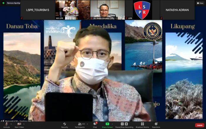 INAnews.co.id,Jakarta – Program Studi Pariwisata, Fakultas Bisnis, LSPR Communication & Business Institute (LSPR) berkolaborasi dengan Kementerian Pariwisata & Ekonomi Kreatif Republik Indonesia menyelenggarakan Studium Generale melalui media daring (webinar) pada hari Kamis, 18 Maret 2021.