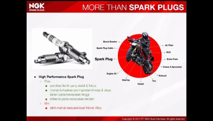 “Kemampuan teknik NGK Spark Plugs telah memungkinkan untuk menciptakan busi dengan material dan desain istimewa. Oleh karena itu, selain menggunakan material baru yang sangat keras dan memiliki titik lebur yang tinggi, kami juga mendesain busi ini dengan fokus peningkatan durabilitas busi dan performa mesin motor.” imbuhnya.