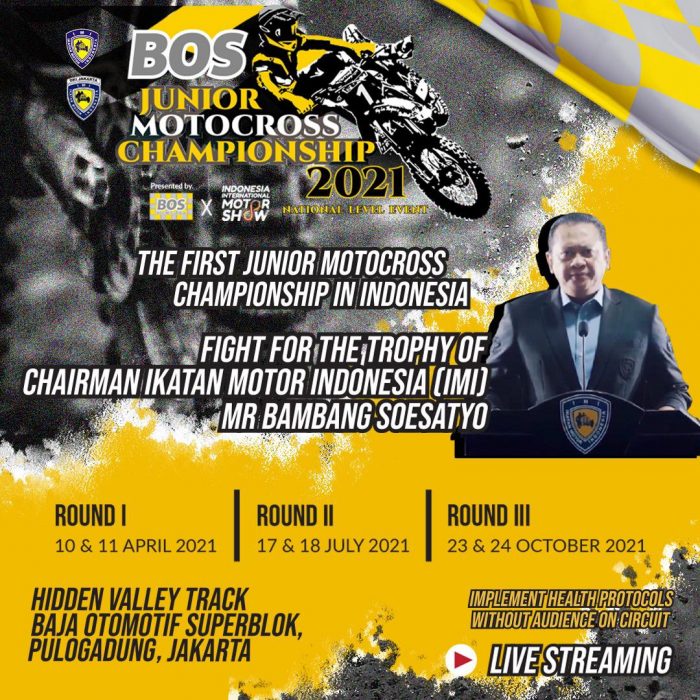 CEO Baja Otomotif Superblok (BOS), Djoko Iman Santoso mengatakan event BOS Junior Motocross Championship merupakan event pertama Motocross di tahun 2021 sekaligus menjadi event pertama yang fokus untuk para crosser cilik/junior di Indonesia.