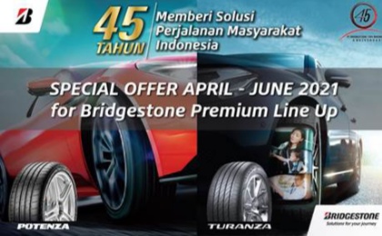 Dalam rangka merayakan hari bersejarah ini dan sebagai tanda terima kasih Bridgestone Indonesia kepada seluruh pelanggan, Bridgestone Indonesia menawarkan penawaran spesial bagi kedua produk andalan mereka tersebut sekaligus membagikan merchandise eksklusif bertemakan hari jadi ke 45 tahun bagi setiap pembelian produk Bridgestone lewat seluruh jaringan resminya.