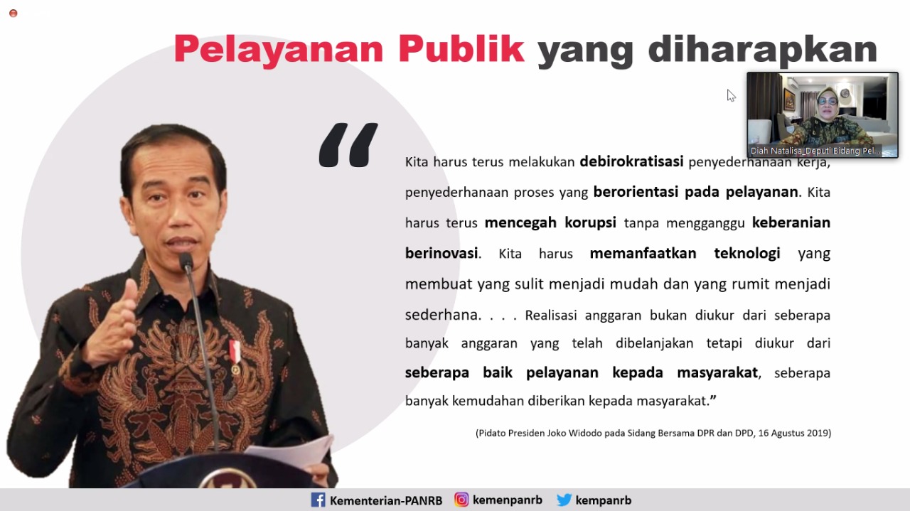 “Sebagai catatan, komponen _service delivery_ ini menjadi fokus utama yang harus diperhatikan, karena pada komponen ini pihak penyelenggara pelayanan berhubungan langsung dengan pengguna layanan,” jelas Diah. Komponen _service delivery_ wajib dipublikasikan seluas-luasnya kepada masyarakat melalui berbagai media publikasi yang tersedia, agar memudahkan masyarakat dalam memperoleh informasi tentang layanan.