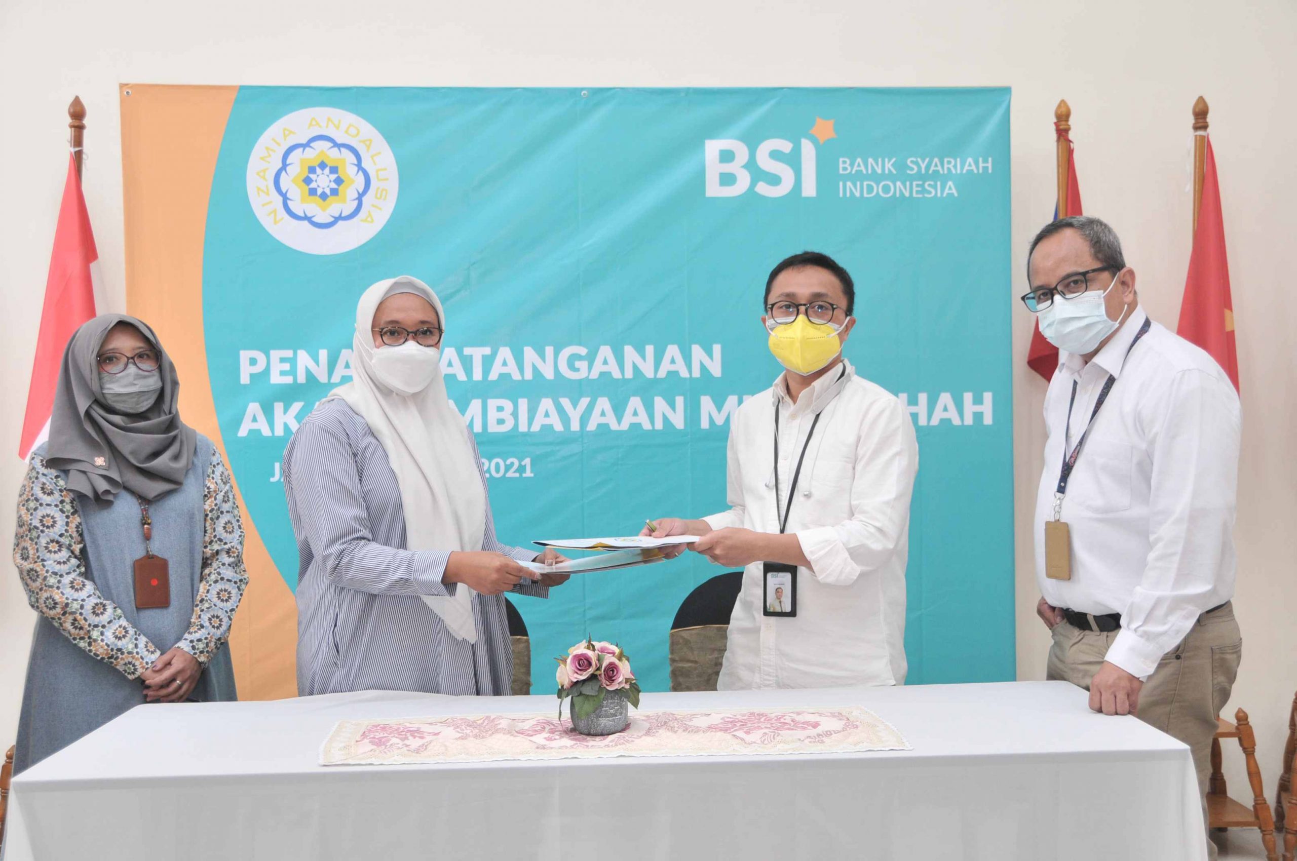 Secara simbolis, penandatanganan akad pembiayaan tersebut dilakukan baru baru ini di Jakarta, dan dihadiri Ketua Yayasan Nizamia Andalusia Fatma Fajjarini, Penasehat Yayasan Nizamia Andalusia Muhamad Nasir serta Regional CEO VI Jakarta III Bank Syariah Indonesia Firman Jatnika.