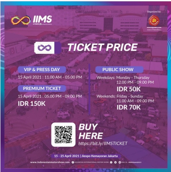 Untuk berpartisipasi, tiket IIMS Hybrid 2021 bisa didapatkan melalui official website IIMS Hybrid 2021 di indonesianmotorshow.com.