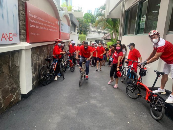 INAnews.co.id, Jakarta- Puluhan relawan, sahabat dan pendukung Anindya Bakrie adakan acara gowes bareng keliling Kota Jakarta. Acara bersepeda santai dengan atribut merah-merah ini digelar sebagai bentuk dukungan mereka kepada Anindya yang maju sebagai calon ketua umum Kamar Dagang dan Industri (Kadin) Indonesia.