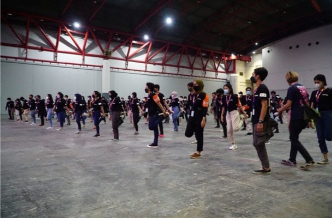 Satgas Covid-19 IIMS Hybrid 2021 melakukan gelar pasukan pada Kamis (22/04/2021) untuk memperkuat koordinasi tim dalam menjalankan tugas memastikan protokol kesehatan di IIMS Hybrid 2021.