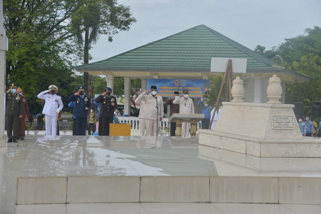 Banjarbaru – Ketua Dewan Perwakilan Rakyat Daerah (DPRD) Provinsi Kalimantan Selatan, Supian HK menghadiri peringatan Hari Ulang Tahun (HUT) Proklamasi Gubernur Tentara ALRI Divisi IV Pertahanan Kalimantan ke-72, di Taman Makam Pahlawan Nasional H. Hasan Basry, Senin (17/5).