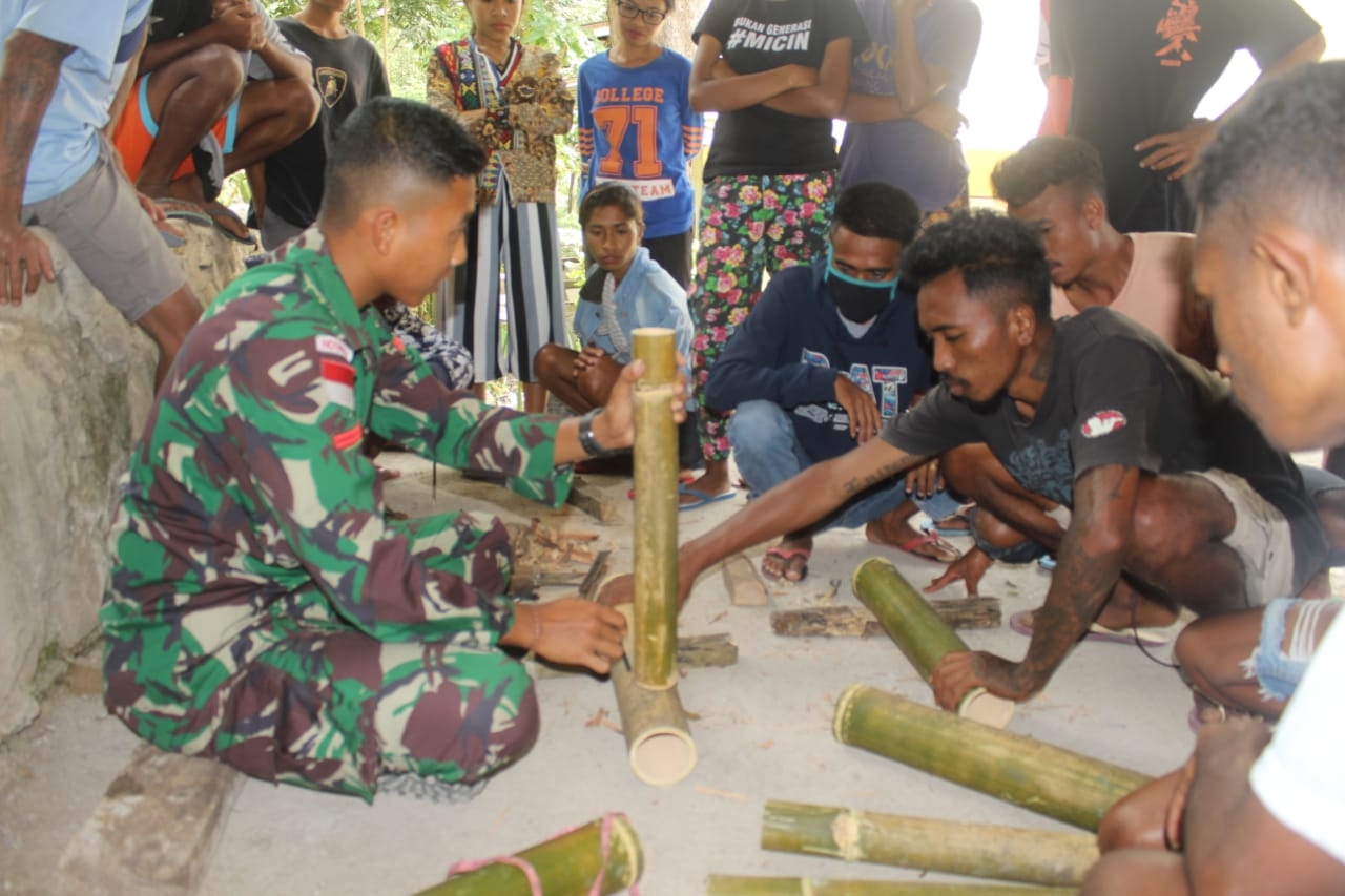 INAnews.co.id, NTT – Salah satu upaya untuk meningkatkan kreatifitas masyarakat, Danpos Lakmars Serka Nictesen Adi Putra Duru bersama anggota mengajarkan kerajian pembuatan kursi dan meja dari bambu kepada masyarakat Desa Nualain Kecamatan Lamaknen Selatan Kabupaten Belu, Sabtu (8/5/2021).