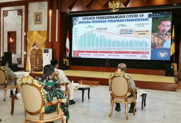 Pj Gubernur Kalsel sebelumnya mengikuti arahan Presiden RI, Joko Widodo terkait upaya menekan penyebaran covid 19 di Indonesia secara virtual. Arahan presiden diikuti seluruh Kepala Daerah seluruh di Indonesia.