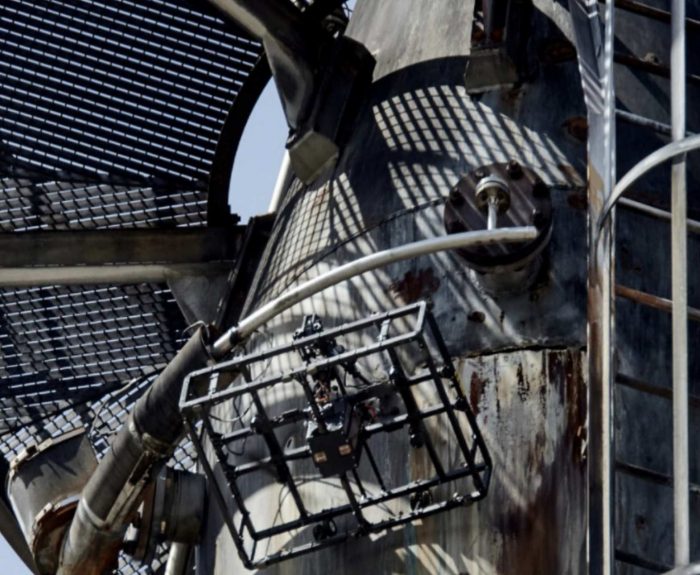 Drone tersebut dapat melakukan inspeksi hingga pengukuran ketebalan ultrasonik (ultrasonic thickness measurement) pada aset perusahaan industri migas seperti flare stack dan tangki.
