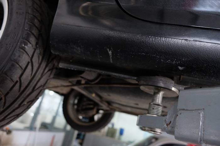 saat didongkrak karena salah posisi dongkrak saat kendaraan di angkat.