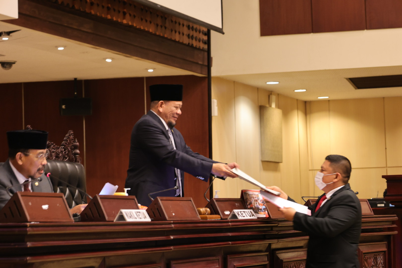 “Sidang Paripurna Ke-11 DPD RI hari ini diselenggarakan secara kombinasi fisik terbatas dan virtual, dihadiri secara fisik oleh Pimpinan dan Anggota DPD RI dengan tetap memperhatikan protokol Waspada Penanganan Covid-19,” tutur LaNyalla.