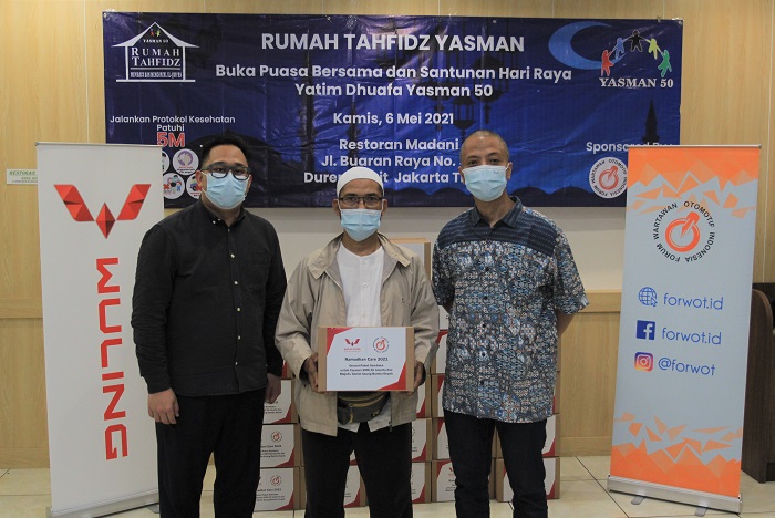 INAnews.co.id, Jakarta – Wuling Motors (Wuling) berkolaborasi dengan Forum Wartawan Otomotif Indonesia (FORWOT) menyalurkan sumbangan berupa 100 paket sembako yang ditujukan kepada Yayasan SMA 50 Jakarta dan Majelis Taklim Saung Bambu Depok hari ini. Dalam kegiatan yang bertajuk Ramadhan Care 2021 ini, Wuling melakukan penyerahan secara simbolis kepada FORWOT di Rumah Makan Madani, Jakarta Timur.