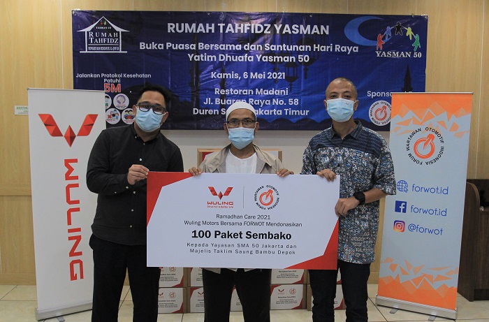 Dalam keterangannya ke awak media pada Kamis (6/05/2021) Brian Gomgom selaku Media Relations Wuling Motors mengatakan “Pada kesempatan ini kami menggandeng FORWOT untuk mewujudkan kegiatan Ramadhan Care 2021. Kami sangat mengapresiasi kegiatan ini untuk berbagi kepada sesama di bulan yang penuh berkah. Kami berharap Yayasan SMA 50 Jakarta dan Majelis Taklim Saung Bambu Depok dapat menerima manfaat dari donasi yang diberikan sehingga meringankan beban di masa pandemi”.