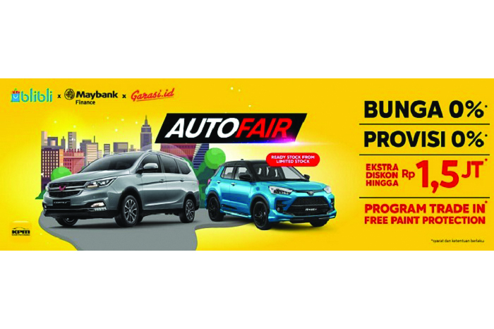 INAnews.co.id, Jakarta – e-commerce lokal terdepan Blibli saat ini kembali berkolaborasi dengan Maybank Finance, solusi pembiayaan dari salah satu bank terbesar di Indonesia, dan Garasi.id, pusat jual beli mobil bekas berkualitas, menyelenggarakan program “Blibli x Maybank Finance x Garasi.id AutoFair”, berupa pameran otomotif virtual yang berlangsung mulai 21 Juni hingga 31 Juli 2021. Program AutoFair ini merupakan bentuk sinergi guna mendorong pertumbuhan industri otomotif untuk senantiasa melayani pasar di tengah tantangan pandemi COVID-19.