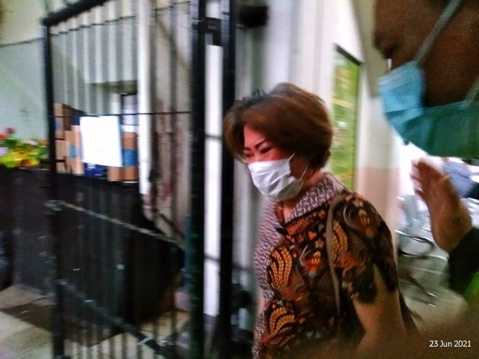Fini Fong istri terdakwa Arwan Koty, menangis saat diusir dari ruang sidang PN Jakarta Selatan pada rabu 23 juni 2021. Fini Fong merasa kecewa karena sidang ditunda dan terkesan adanya ketidakpastian hukum ( foto ; INAnews)