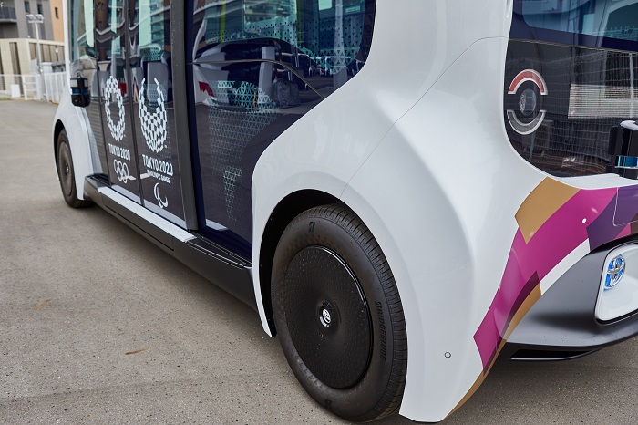 Ban yang dirancang khusus untuk kendaraan otonom Toyota e-Palette yang akan digunakan di Kawasan Olimpiade dan Paralimpiade