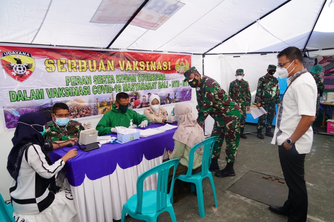 Komandan Korem 162/WB Brigjen TNI Ahmad Rizal Ramdhani, S.Sos. SH. M.Han., disela-sela pemantauan serbuan vaksinasi Covid-19 menyampaikan serbuan vaksinasi ini dilakukan untuk mencegah atau meminimalisasi laju kasus Covid-19 di NTB khususnya di Kota Mataram mengingat Kota Mataram sudah ditetapkan sebagai salah satu kabupaten kota yang harus berlakukan PPKM Darurat.