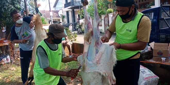 Pelaksanaan pemotongan hewan qurban diadakan di Lapangan Merak RW 20 di komplek perumahan tersebut, Selasa (20/07/2021) selepas shalat Idul Adha.