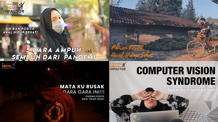 Daewoong Social Impactor adalah program duta mahasiswa yang memproduksi dan mempromosikan konten digital kesehatan yang berkontribusi pada peningkatan kualitas hidup seluruh masyarakat Indonesia dengan tema ‘Pikiran Positif Awal Hidup Sehat’.