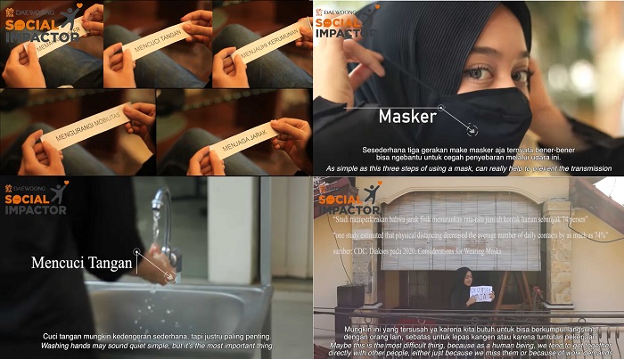 Tidak hanya berhasil menyampaikan informasi kesehatan yang tepat, beberapa peserta juga melakukan aksi menebar kebaikan. Salah satu peserta Maulana Hanif Ibrahim, menarik perhatian dengan menyumbangkan sebagian dari beasiswanya, yang diberikan kepada seluruh Daewoong Social Impactor, ke panti asuhan lokal ‘Yayasan Yatim Mandiri’ untuk masyarakat kurang mampu yang menderita COVID-19 pada bulan Juni.
