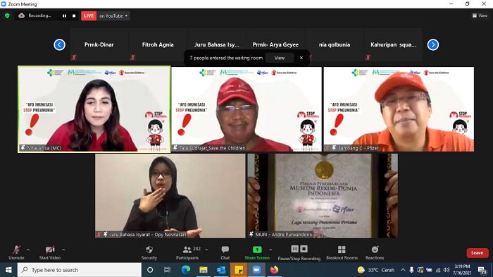 Tahun 2021, sebagai rangkaian perayaan Hari Anak Nasional, Save the Children dengan dukungan Pfizer Indonesia mengadakan kampanye daring “Ayo Imunisasi STOP Pneumonia”. Kegiatan kampanye dilakukan sekaligus untuk meluncurkan lagu “STOP Pneumonia” yang mendapatkan rekor muri sebagai lagu tentang pneumonia pertama di Indonesia.