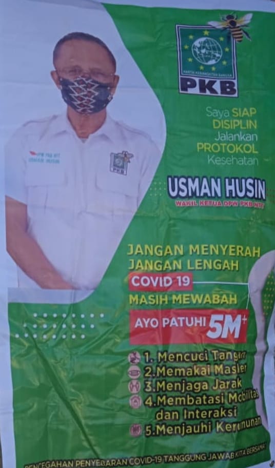 Kalau sebelumnya, Usman Husin mengajak warga menaati protokol kesehatan dalam kapasitasnya sebagai Ketua Dewan Pimpinan Wilayah (DPW) Asosiasi Keagenan Kapal Indonesia atau Indonesia Shipping Agencies Association (ISAA) Provinsi NTT, kali ini Usman Husin mengajak warga menaati protokol kesehatan dalam kapasitasnya sebagai Wakil Ketua DPW Partai Kebangkitan Bangsa (PKB) NTT.