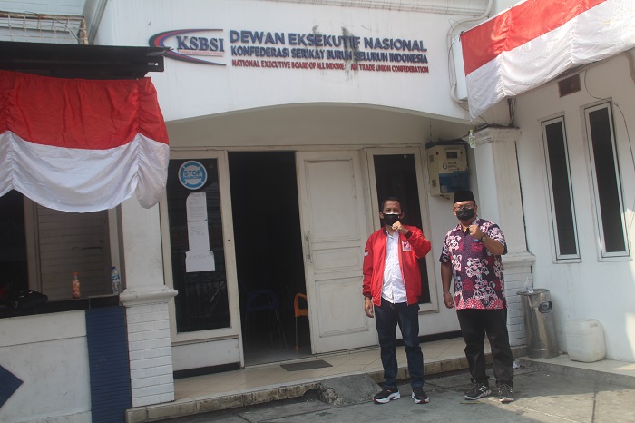 Anggota Komisi A DPRD DKI Jakarta, August Hamonangan bersama Sekjend DEN KSBSI, Dedi Hardianto.