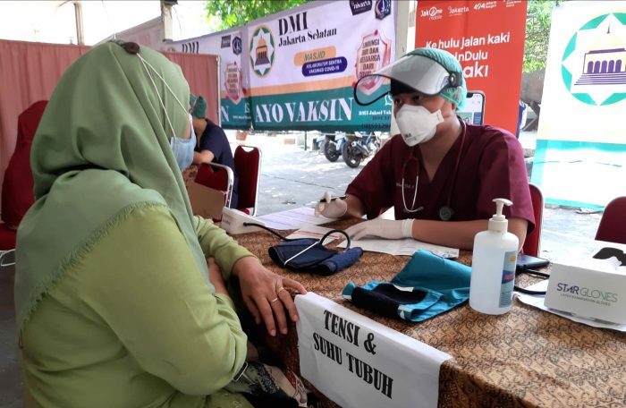 INAnews.co.id, Jakarta – Guna mefasilitasi kesehatan umat , Dewan Masjid Indonesia (DMI) Kota Jakarta Selatan melakukan vaksinasi massal di Masjid Al Insan di Kelurahan Grogol Utara Jakarta Selatan pada hari minggu 15 agustus 2021.