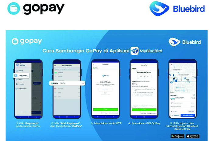 Pengguna setia Bluebird kini dapat menggunakan GoPay untuk transaksi semua layanan Bluebird, mulai dari taksi Bluebird, Silverbird, hingga layanan logistik Birdkirim. Selain mengurangi risiko penyebaran virus melalui metode pembayaran tunai, pembayaran dengan GoPay di aplikasi MyBlueBird juga semakin memudahkan dan mempersingkat waktu transaksi menjadi 5 detik saja.