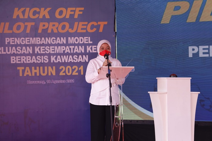 INAnews.co.id, Karawang-Menteri Ketenagakerjaan, Ida Fauziyah, mencanangkan Pilot Project Pengembangan Kesempatan Kerja Berbasis Kawasan. Hal ini sebagai upaya Kementerian Ketenagakerjaan mentransformasikan program perluasan kesempatan kerja, dalam mengembangkan program tenaga kerja mandiri yang efektif untuk memperluas kesempatan kerja secara berkelanjutan.