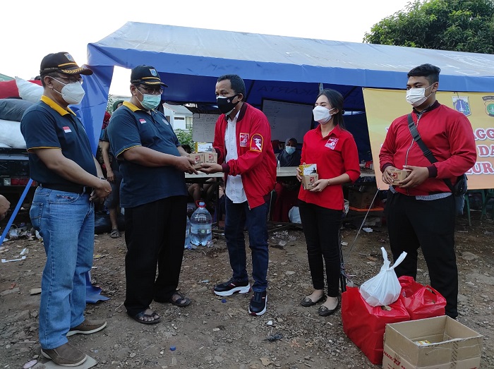 August Hamonangan, Menyerahkan #ricebox pada korban kebakaran di pasar buncit Mampang ,Jakarta Selatan (Photo : Dok PSI)