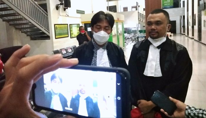 Kuasa Hukum Arwan Koty, Aristoteles MJ Siahaan SH. saat dimintai keterangan oleh media seusai persidangan pada , Rabu malam, 8 september 2021 (foto : INAnews)