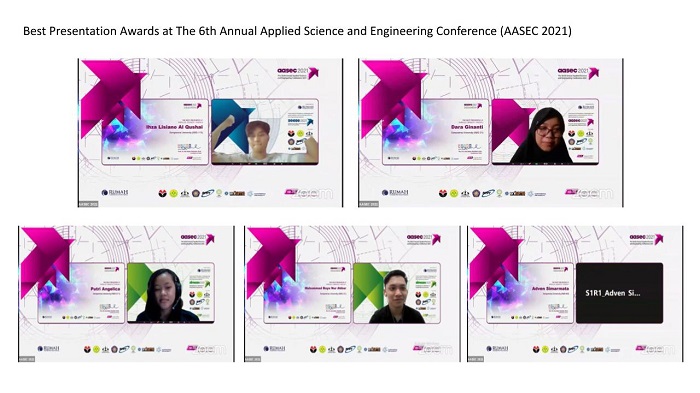 Sebagai kegiatan tingkat nasional yang kali ini membahas tentang “Post Covid-19 Pandemic : Challenges and Opportunities in Environmental, Science and Engineering Research”, pada kegiatan The 6th Annual Applied Science and Engineering Conference (AASEC) 2021, lima mahasiswa Sampoerna University berhasil mendapatkan penghargaan sebagai Best Presentation Awards setelah menyampaikan hasil penelitiannya masing-masing di ranah ilmu sustainable & environmental engineering.